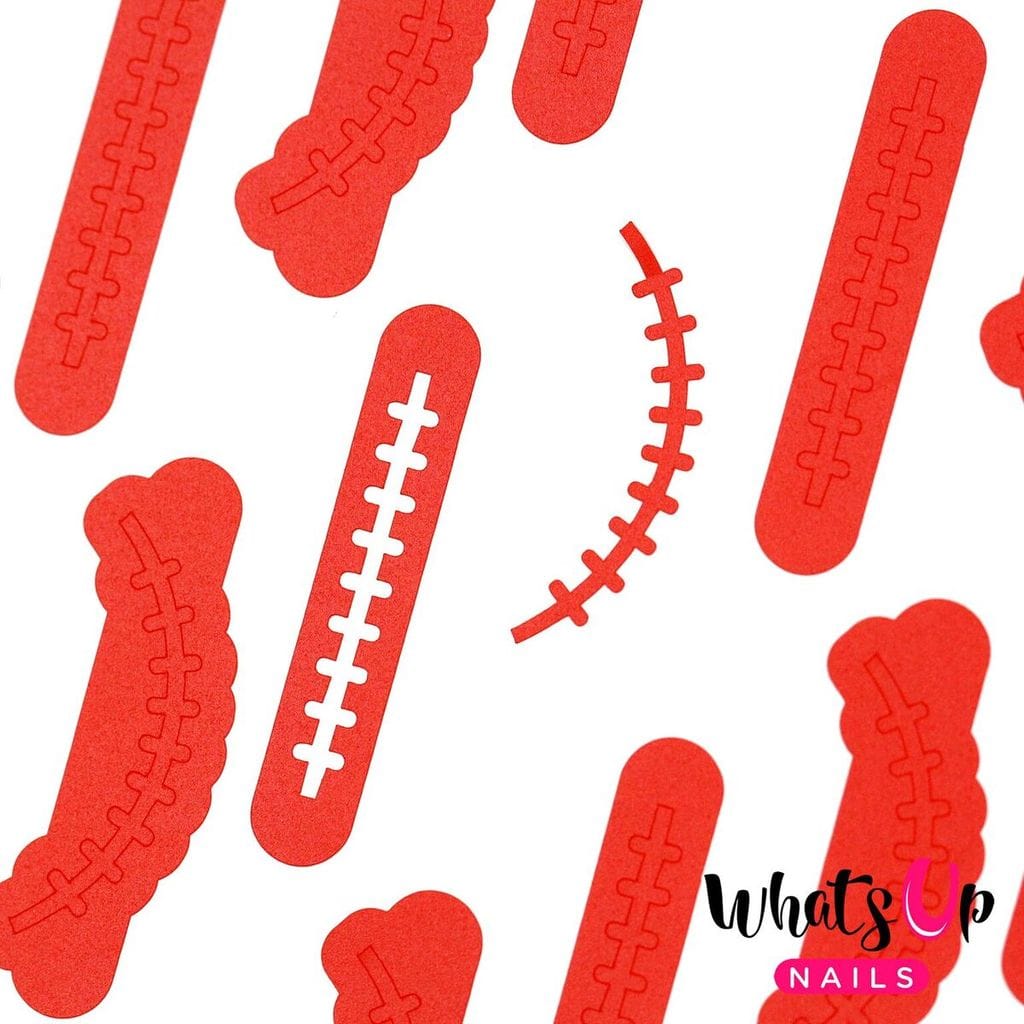 Create the perfect stitches designs on your nails. With 2 different type of stitches stencils to choose from. Perfect for Halloween, American Football and Baseball games!