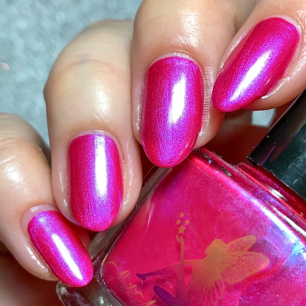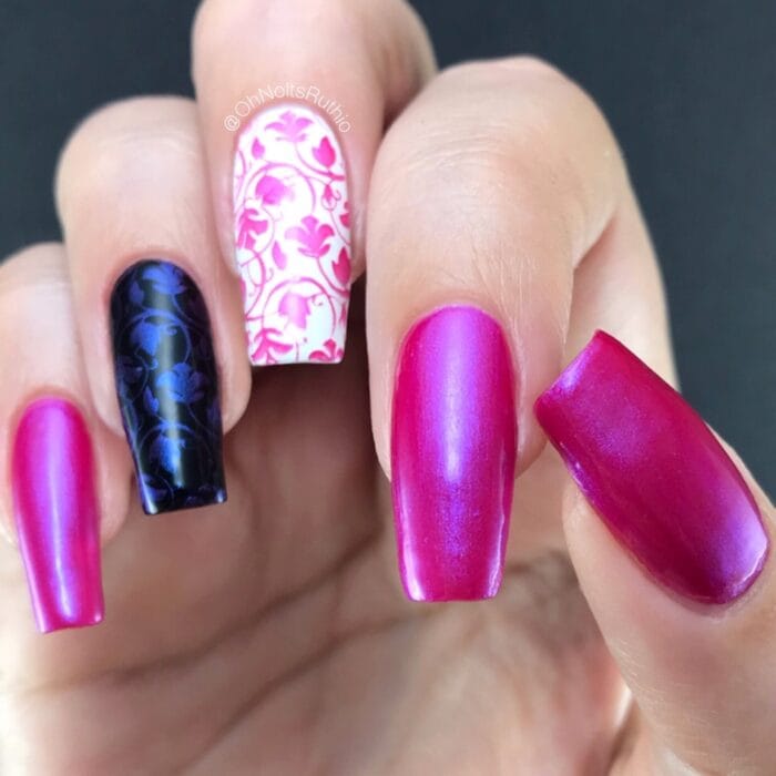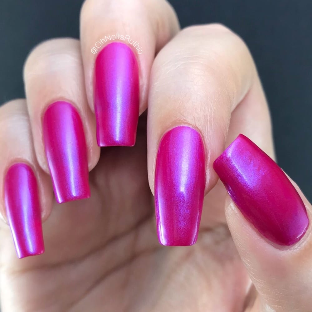 A beautiful hot pink with blue shimmer polish that works great as a stamping polish.